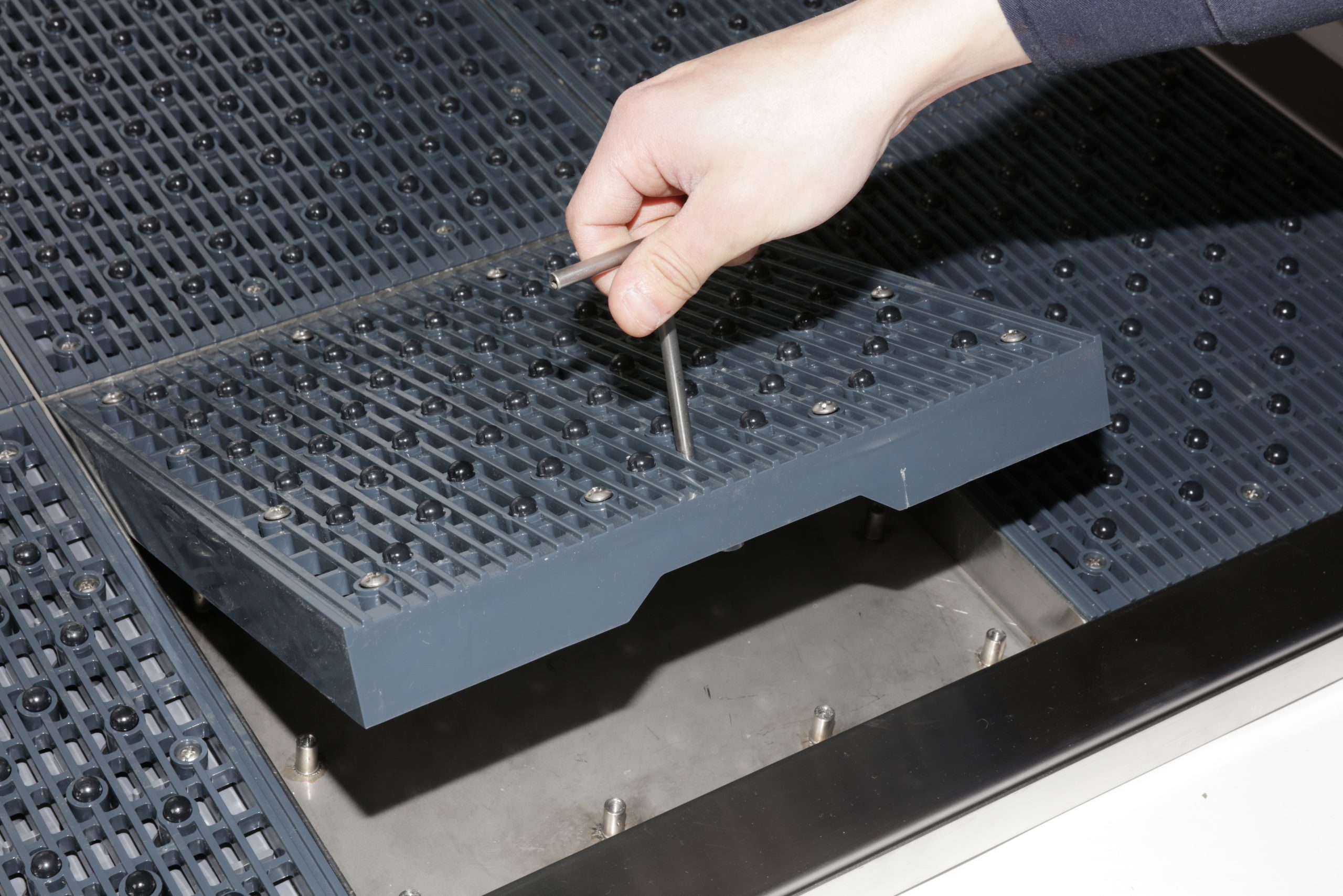 A polikarbonát és a több egységből álló szőnyegek kialakítása biztosítja hogy a szőnyeg nem törik vagy deformálódik erős rázkódás és külső behatások hatására. (KIMM által hitelesített erősség)